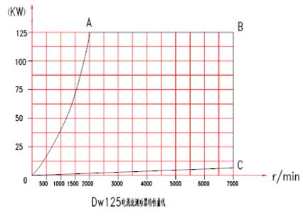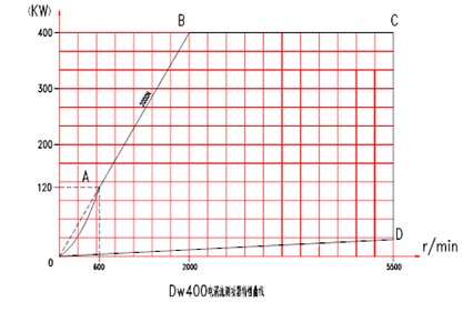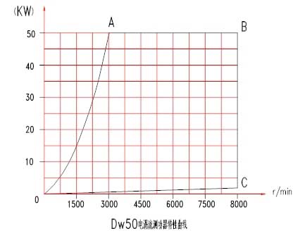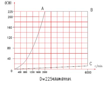 2.特性曲線 DW系列電渦流測功機(jī)特性曲線表示測功機(jī)在不同轉(zhuǎn)速下所能吸收的功率范圍,它由OABC組成。 OA—最大扭矩線。當(dāng)最大扭矩為常數(shù)時(shí)所能吸收的最大功率,隨著轉(zhuǎn)速的增加而上升,在A點(diǎn)達(dá)到扭矩強(qiáng)度所允許的最大功率。 AB—最大功率線。測功機(jī)達(dá)到最大扭矩點(diǎn)(A)后,隨著轉(zhuǎn)速的變化測功機(jī)所允許吸收的最大功率。 BC—最高轉(zhuǎn)速線。測功機(jī)在工作時(shí)允許的最高轉(zhuǎn)速。 上述三段限線所包圍的區(qū)域?yàn)闇y功機(jī)的工作范圍。凡動力機(jī)或其它機(jī)械設(shè)備的動力特性在OABC所包圍的范圍內(nèi)者,均能用該型測功機(jī)進(jìn)行特性試驗(yàn),用戶在選用測功機(jī)時(shí)須稍留有余地。但余地太大,測試精度則難以保證。 或由OABCD組成,則AB線為主軸強(qiáng)度所容許的最大扭矩值,其余BC、CD線含意同上。